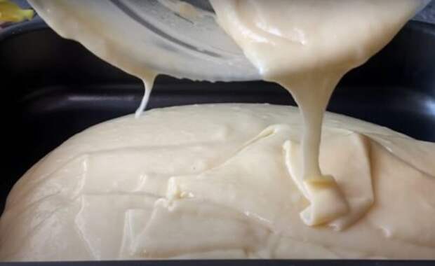 В форму для выпечки (16х24 см) выкладываем тесто, равномерно распределяем по поверхности.